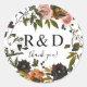 Sticker Rond Monogramme floral rustique or, violet et rose 3-