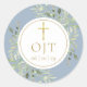 Doté d'une croix d'or, d'initiales monographiques et d'une date aux feuilles d'aquarelle délicats sur un arrière - plan bleu poussiéreux, cet autocollant chic est parfait pour de nombreuses occasions religieuses chrétiennes. Conçu par Thisisnotme©