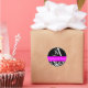Sticker Rond Monogramme mariage damassé en noir et Fuchsia