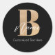 Sticker Rond Monogramme moderne Initiale B & Nom Personnalisé
