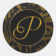 Sticker Rond Monogramme P Gold et Black Mariage damassé Seal