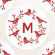 Une couronne d'oiseaux et de baies rougeâtres scandinaves entourant une première monogramme. Art original de Nic Squirrell. Modifiez le monogramme pour personnaliser.