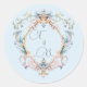Sticker Rond Monogramme Régence Crest Bleu Élégant