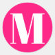 Sticker Rond Monogramme rose fuchsia blanc numéro initial