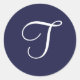 Sticker Rond Monogramme T, blanc sur bleu marine,