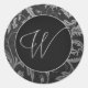 Sticker Rond Monogramme W Silver et Black Mariage damassé Seal
