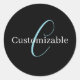 Sticker Rond Monographie de script cursive modifiable noir bleu