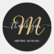 Script en or noir moderne monogramme merci classique collant rond
