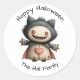 Sticker Rond Monstre mignon avec "Happy Halloween" et nom