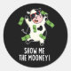 Sticker Rond Montrez-Moi Le Mooney Funny Cow Pun Dark BG