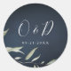 Moderne chic et minimaliste aquarelle feuillage végétal design sur arrière - plan bleu marine moody, avec des couples monogramme au centre, de grands phoques pour mariage moderne, mariage rustique, et mariage de jardin botanique en été et en automne. Voir toutes les pièces correspondantes dans la collection.