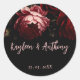 Moody vintage fleurs foncées cramoisi rouge pivoine roses floral mariage autocollants mariée et nom du marié noir autocollants de mariage