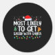 Sticker Rond Most Likely To Get Sy With Santa Funny Family Chri