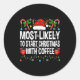 Sticker Rond Most Likely To Start Christmas With Coffee Family