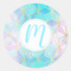 Les formes géométriques des cubes sont superposées en motif et colorées dans des tons alternés de bleu pastel, rose et violet qui lui donnent un aspect de verre irisé. Les formes sont dessinées dans une parties scintillant en faux or.