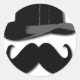 Sticker Rond moustache, chapeau supérieur, cravate arc et perle