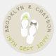 Sticker Rond Mr & Mrs Green Flowers Flip Flops Plage Mariage