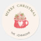 Autocollant de Noël présentant des polices élégantes dans lesquelles toutes vos informations personnalisées sont écrites, associées à une illustration de mug de cacao chaud dans une palette de couleurs pastel atténuées. Découvrez notre magasin pour plus d'articles de cette collection.