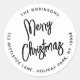 Ajoutez une touche de finition élégante aux enveloppes de cartes de vacances avec des scellés d'enveloppe d'adresse de retour Joyeux Noël chic. Tout libellé sur ce modèle est simple à customiser ou à supprimer. Le design noir et blanc présente une calligraphie de script brossé moderne et une adresse de typographie minimaliste en cercle. Ces étiquettes d'adresse de retour arrondies uniques font un ajout élégant aux cartes de Noël et aux invitations de fêtes de fin d'année.