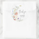 Des autocollants élégants pour la douche nuptiale présentent de délicates fleurs sauvages aquarelles, merci, votre nom et la date de la douche dans une écriture chic. ARTICLES appariés dans notre collection.
