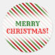 Sticker Rond Noël ; Motif rayé rouge, blanc et vert