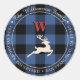 Sticker Rond Noël Vacances Rouge Monogramme Cerf Bleu En vichy