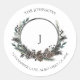 Sticker Rond Noir Pinecone Berry Wreath Monogramme Classi