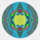 Sticker Rond ~ Noir rose bleu et jaune fractal ~