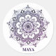 Caractéristiques de conception ce saisissantes d'autocollant un beau motif pourpre de mandala de style de tatouage de henné. Sous, il y a une tache pour customiser l'autocollant avec votre nom ou texte. Cet autocollant est entièrement personnalisable ! Vous pouvez changer la couleur des textes, de police ou d'arrière - plan si vous souhaitez. Entrez juste en votre propre texte personnalisé dans la boîte, ou frappez le bouton de personnaliser si vous devez apporter n'importe quelles modifications de couleur ou de style. Regarde grand dans beaucoup de couleurs ! Cette conception est également disponible sur un carnet. Grand pour le mandala, la fleur, le tatouage de henné et les amants de méditation. Fait un grand cadeau !