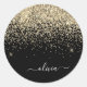 Sticker Rond Nom Monogramme Pailleté Girly Noir Or