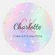 Un arrière - plan holographique, unicorne et arc-en-ciel de couleur rose, violet et vert menthe. Décoré avec des faux étincelles. Personnalisez et ajoutez votre prénom, vos initiales monographiques et votre nom complet.