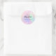 Un arrière - plan holographique, unicorne et arc-en-ciel de couleur rose, violet et vert menthe. Décoré de confettis. Personnalisez et ajoutez votre prénom, vos initiales monographiques et votre nom complet.