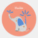 Sticker Rond Nom personnalisé Éléphant mignon avec palmier Carr