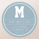 Sticker Rond Nom unique & modèle de monogramme | Bleu poussiére