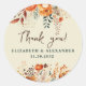 Ces autocollants romantiques et élégants fleuris d'automne Merci font le sceau parfait pour votre mariage, présentant un design botanique chic qui comprend une aquarelle classe illustration de fleurs et de verdure dans les tons chauds de l'automne et est facilement personnalisable avec vos noms et date mariage. Ces autocollants font partie de la collection "Elegant Autumnal Floral Mariage", avec des éléments de coordination pour créer une suite mariage unique.