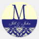 Sticker Rond Noms du monogramme mariage Date Damask Navy Creme