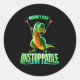 Sticker Rond Now I Am Unstoppable Funny T-rex Tyrannosaurus Din