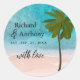 Sticker Rond Ocean Beach Palm Tree Wedding Favoriser
