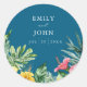 Sticker Rond Océan Bleu Fleurs tropicales Mariage Faveur