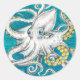 Sticker Rond Octopus Tentacles encre turquoise verte