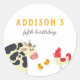 Sticker Rond Oink Baa Quack Moo Farm Animals Birthday Party