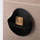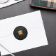 Étiquettes autocollantes rondes luxe monogrammées avec un fond aspect cuir noir et un carré métallisé cuivre doré faux avec des initiales de monogramme script. ++++++++++++++ Facile à personnaliser avec vos initiales de monogramme d'entreprise ou personnelles et votre nom. ++++++++++++++ Pourrait être une étiquette cadeau personnalisée élégante pour entreprise ou toute autre occasion, papeterie personnelle ou de bureau, sceau d'enveloppe.