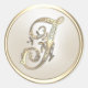 Sticker Rond Or et ivoire Ornate initial Monogramme J