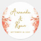 Sticker rond Mariage classique à coulis d'or orange Fleurs florales . Belles fleurs d'oléandre orange et script tendance. Ajoutez les noms des mariés et des mariés et la date du mariage.