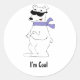 Sticker Rond Ours Polaire Caricaturé En Écharpe Et Tons