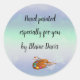 Cet autocollant modifiable présente une palette de peintres avec pinceaux contre un arrière - plan d'aquarelle dégradé. Le texte dit "Main peinte spécialement pour vous par (nom). Le texte est modifiable afin que vous puissiez modifier les mots ainsi que le style de police, la taille et la couleur et en faire votre propre ! Profitez de votre nouvelle palette de peintres modifiables, spécialement pour vous Sticker rond classique!