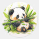 Sticker Rond Panda adorable mignonne mangeant des pousses de ba