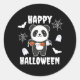 heureux halloween Le panda avec citrouille d'Halloween. Animaux amusants en citrouille avec la guirlande d'Halloween. Un costume d'Halloween amusant pour les bébés et les enfants qui aiment les pandas.