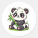 Illustration d'un panda assis confortablement et grignotant sur un bambou avec un sourire ludique et des joues roses.