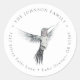 Un autocollant rond d'adresse de retour noir et blanc élégant et magnifique représentant un colibri peint à la main à l'aquarelle avec des détails époustouflants. Personnalisez-le pour le rendre unique